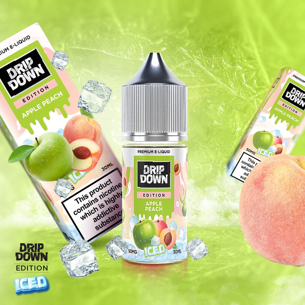 Ensuring you have ample supply to enjoy its invigorating flavor profile. Dive into a world of fruity bliss with every puff of Drip Down Edition Apple Peach Iced!