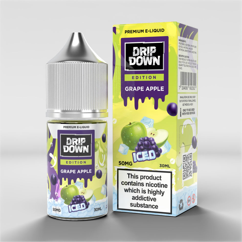 Introducing the irresistible Drip Down Edition Grape Apple Iced – a mouth-watering blend of juicy grapes and crisp apples. Perfectly complemented with a refreshing icy twist. With every 30ml bottle containing your favorite flavor and either 25mg or 50mg. You’ll enjoy nothing short of a satisfying vape experience every time. With each inhale, immerse yourself in a whirlwind of fruity goodness, followed by a cool exhale that will leave your taste buds yearning for more. Take your vaping journey to the next level with Grape Apple Iced and experience the ultimate fruity-icy sensation.