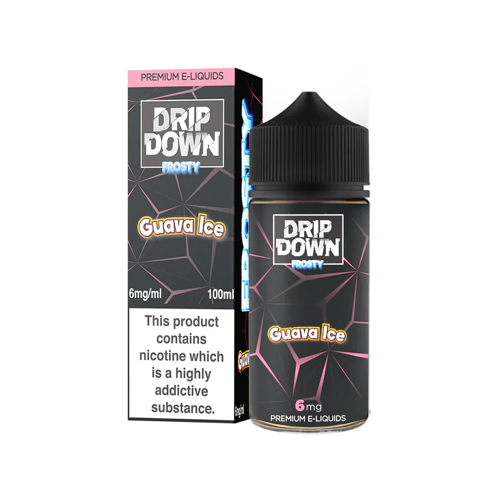 DRIP DOWN Guava Ice is a refreshing and tropical vape juice flavor that combines the juicy and sweet taste of guava with a cool blast of icy menthol. This fruity and ice blend delivers a satisfying and invigorating vaping experience, perfect for those who enjoy a cool and fruity sensation.
