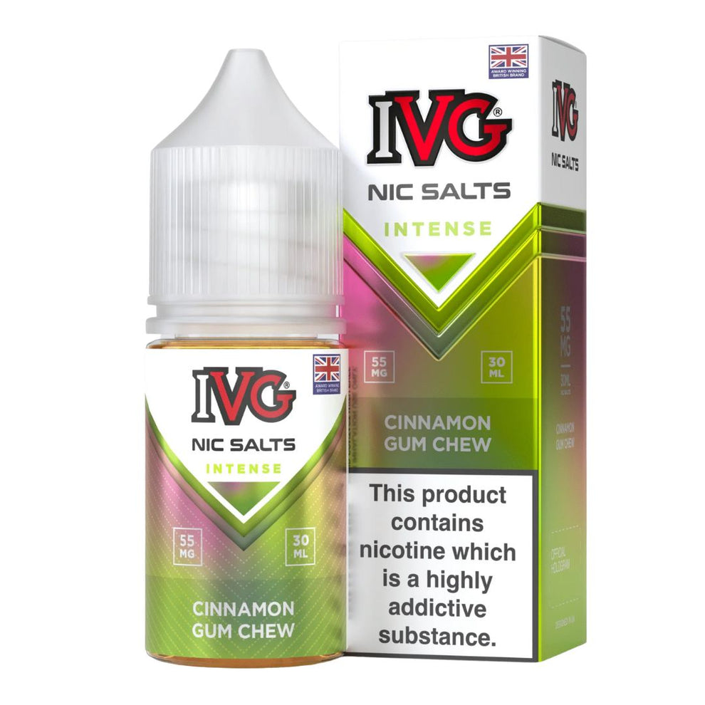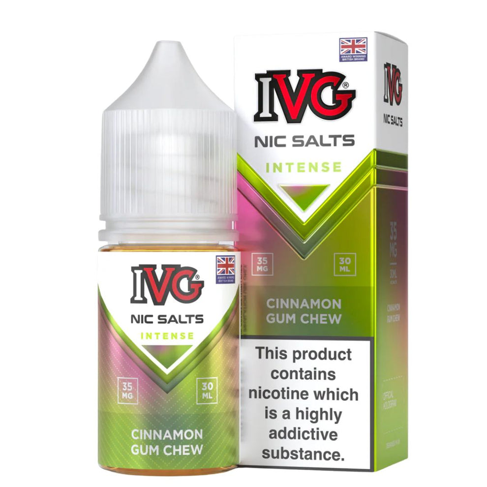 IVG Intense Salts Cinnamon Gum Chew – A nostalgic mix of warm cinnamon spice and classic chewy bubblegum, creating a sweet and spicy vape sensation.