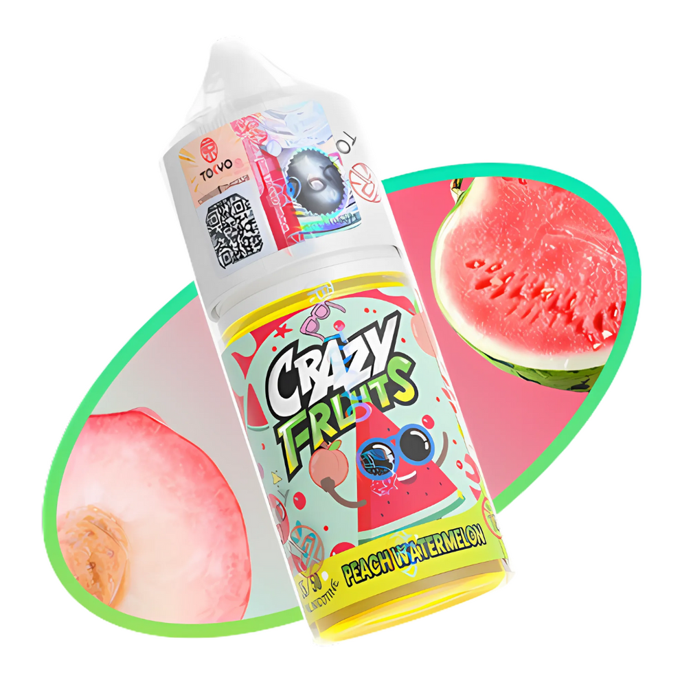 Tokyo Saltnic Crazy Fruits Peach Watermelon 30ml is a premium nicotine salt e-liquid that offers a tantalizing blend of juicy peach and refreshing watermelon flavours. Designed for vapers who crave a smooth and satisfying experience, this e-liquid captures the essence of summertime fruits in every puff. The expertly crafted combination of ripe peach and succulent watermelon delivers a burst of natural sweetness, making each inhalation a delightful treat for your taste buds. Whether you're a fan of fruity vapes or looking to try something new, Tokyo Saltnic Crazy Fruits Peach Watermelon is an ideal choice that promises to keep you coming back for more.
