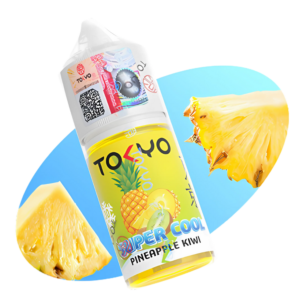Tokyo Pineapple Kiwi Cool Nic Salt Series 30ml E-Liquids. Pineapple has a distinctly bright and vibrant tropical fruit taste that is sweet and tart. When you inhale Pineapple kiwi Ice you’ll feel like you’re in Costa Rica enjoying your summers on the beach.