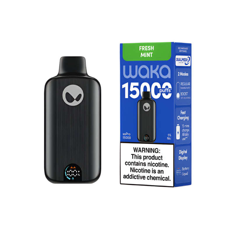 Introducing Waka BOOST 15K, a powerhouse vape offering 15000 puffs in regular mode and 7500 puffs in boost mode. Boasting an 850mAh battery and dual mesh coils, it delivers mad cloud size alongside intense flavor richness.